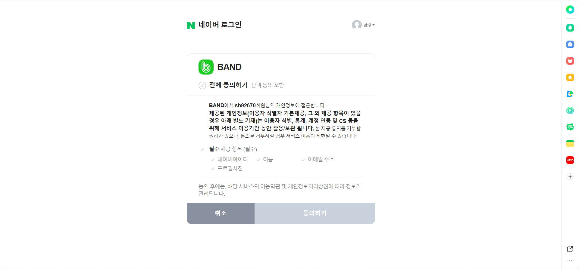 2. 네이버 밴드에 로그인 방식을 선택해서 로그인한다.